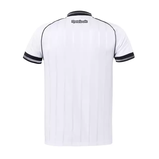 - Acabamento retilíneo e gola inspirada nos modelos clássicos do início da história do clube.